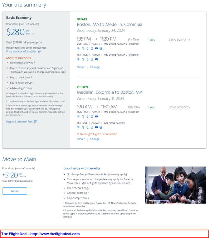 BOS -MIA (Miami) – MDE (Medellin) – MIA – BOS