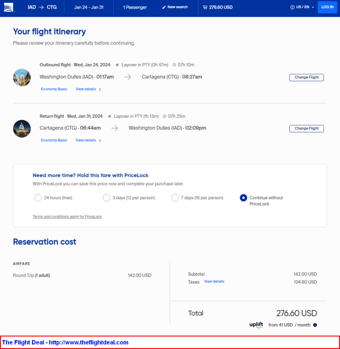 • IAD – PTY (Panama City) – CTG (Cartagena) – PTY – IAD