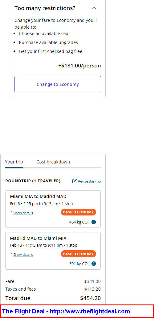 • Miles Flown: 9,364 miles or 4.8 cents per mile (Basic Economy) / 6.8 cents per mile (Regular Economy)