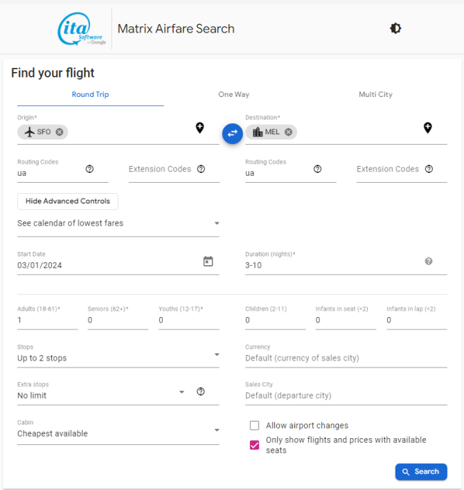 This is just ONE SAMPLE travel date, for more availability, please follow the “Fare Availability” and “How to Search for Availability” instructions below