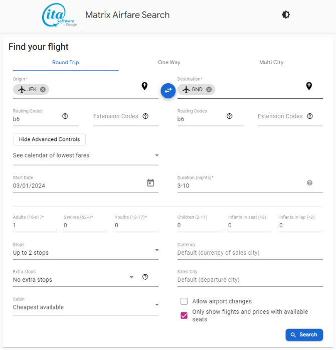 This is instructing Matrix Airfare Search by ITA Software to search for the Basic Economy fare. Use those dates on jetBlue and you will be presented with the option to upgrade to the regular economy fare.