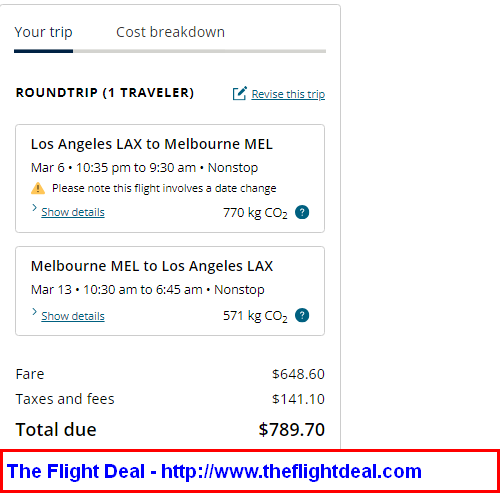 LAX – MEL (Melbourne) – LAX