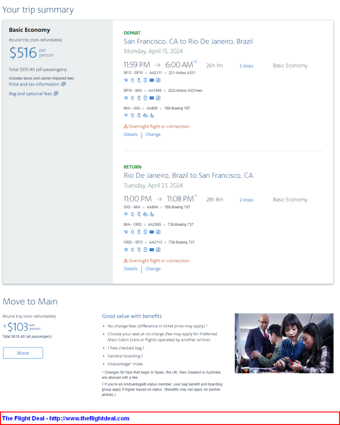 • SFO – DFW (Dallas) – MIA (Miami) – GIG (Rio de Janeiro) – MIA – ORD (Chicago) – SFO