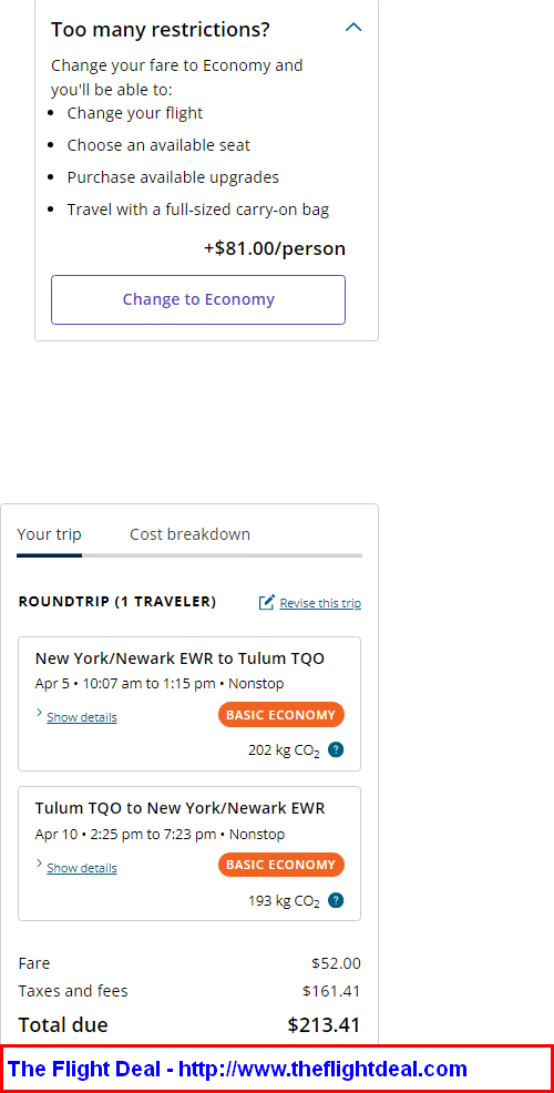 EWR – TQO (Tulum) – EWR