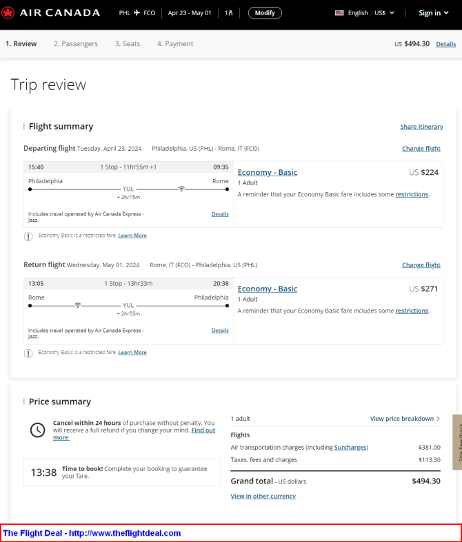 • This is instructing Matrix Airfare Search by ITA Software to search for the Basic Economy fare. Use those dates on Air Canada and you will be presented with an option to upgrade to a regular economy fare.