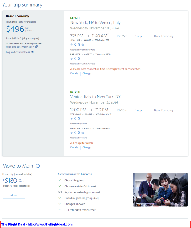 • JFK – LHR (London) – VCE (Venice) – MAD (Madrid) – JFK