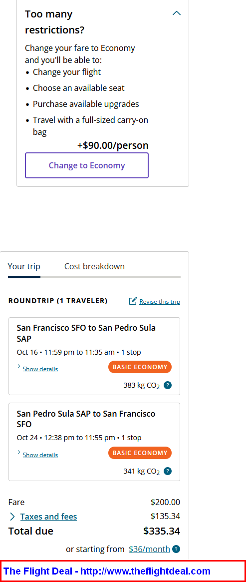 • SFO – IAH (Houston) – SAP (San Pedro Sula) – IAH – SFO