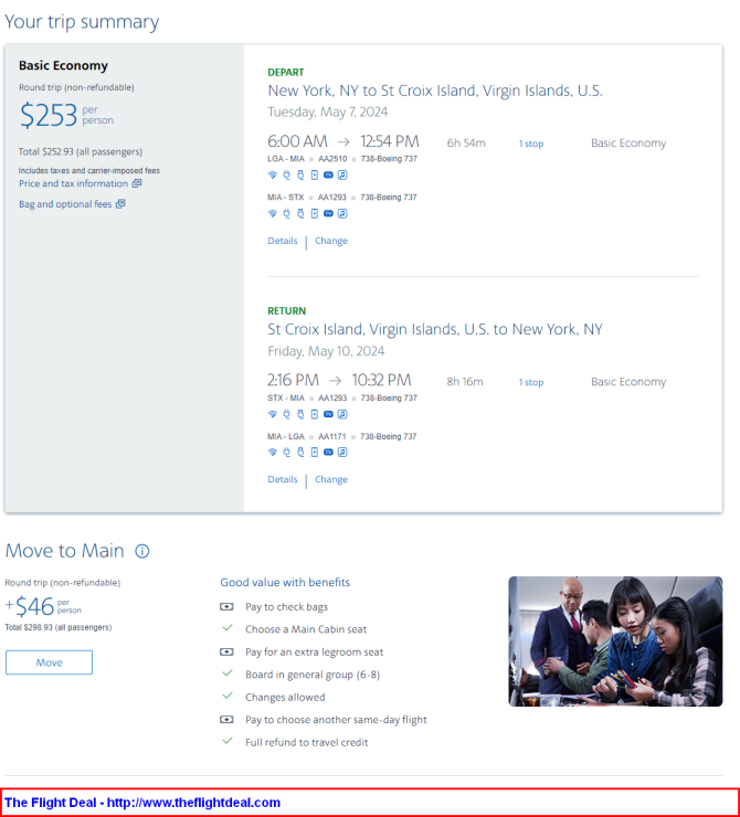LGA – MIA (Miami) – STX (St. Croix) – MIA – LGA