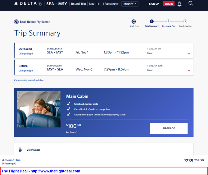 This works both ways, MSY can be the Origin and SEA can be the Destination
