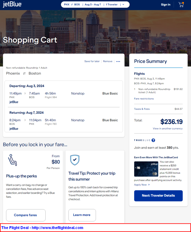 This works both ways, so BOS can be the the Origin and PHX can be the Destination
