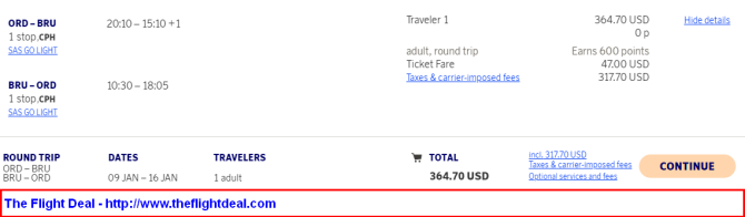 • ORD – CPH (Copenhagen) – BRU (Brussels) – CPH – ORD