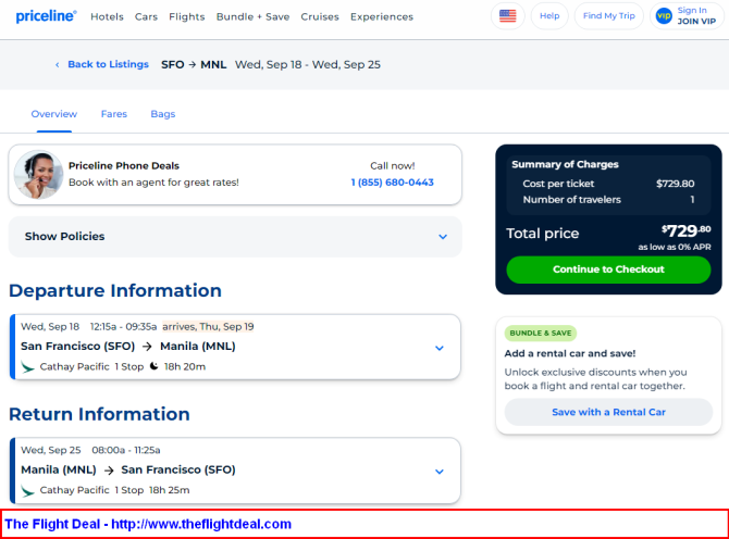 - SFO – HKG (Hong Kong) – MNL (Manila) – HKG – SFO