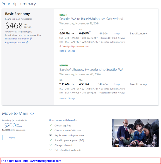 SEA – LHR (London) – BSL (Basel) – LHR – SEA