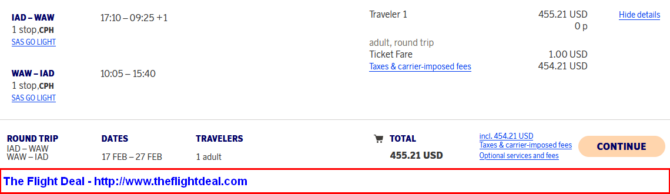 • IAD – CPH (Copenhagen) – WAW (Warsaw) – CPH – IAD