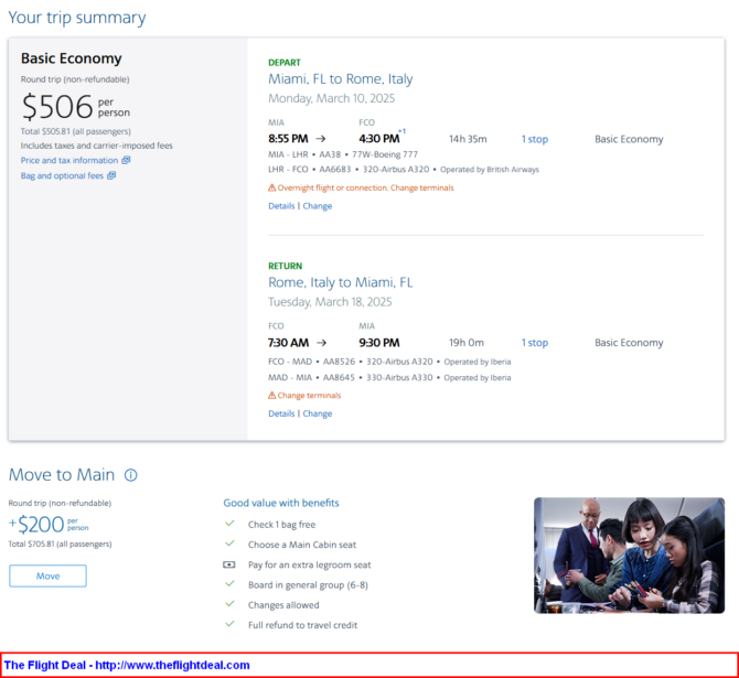 MIA – LHR (London) – FCO (Rome) – MAD (Madrid) – MIA