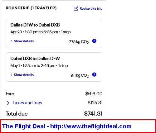 DFW – EWR (Newark) – DXB (Dubai) – EWR – DFW