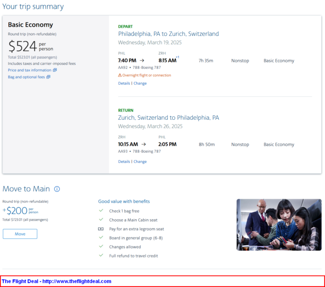 PHL – ZRH (Zurich) – PHL