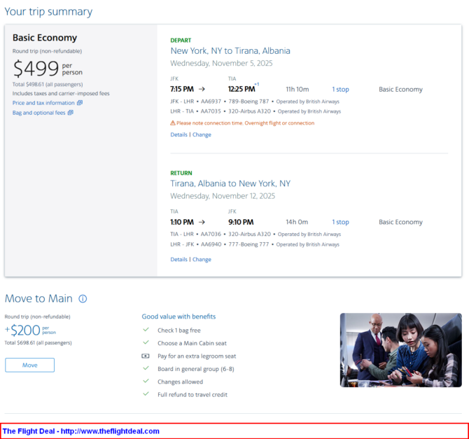 JFK – LHR (London) – TIA (Tirana) – LHR – JFK