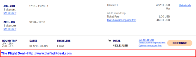• JFK – OSL (Oslo) – ZRH (Zurich) – CPH (Copenhagen) – JFK