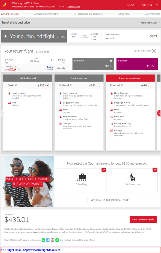 - IAD – MAD (Madrid) – IBZ (Ibiza) – MAD – IAD