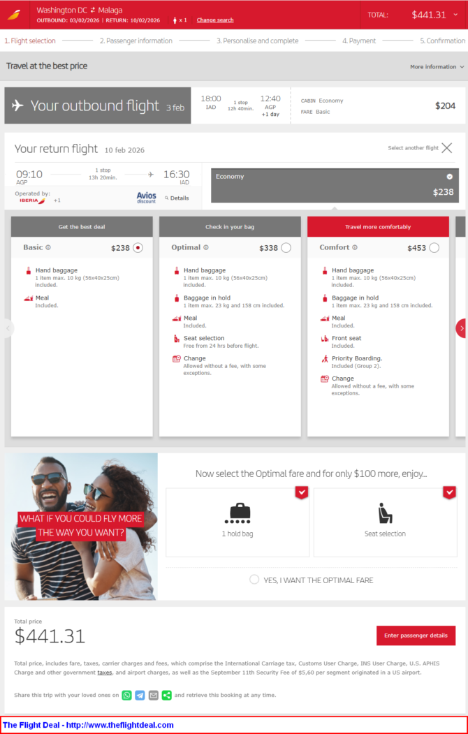- IAD – MAD (Madrid) – AGP (Malaga) – MAD – IAD