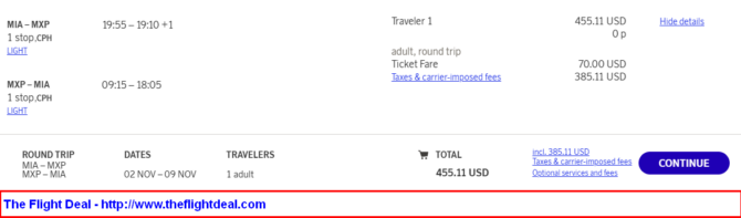 • MIA – CPH (Copenhagen) – MXP (Milan) –  CPH – MIA