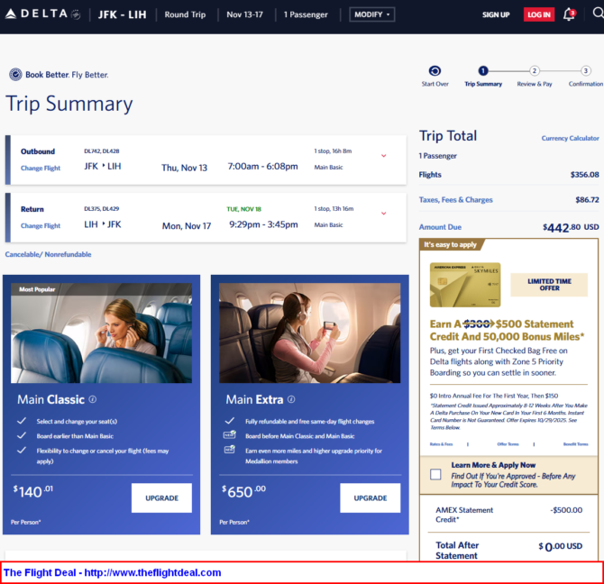Valid for travel from late October – mid November or January 2026 – February 2026. Availability is limited. Must purchase at least 21 days in advance of departure