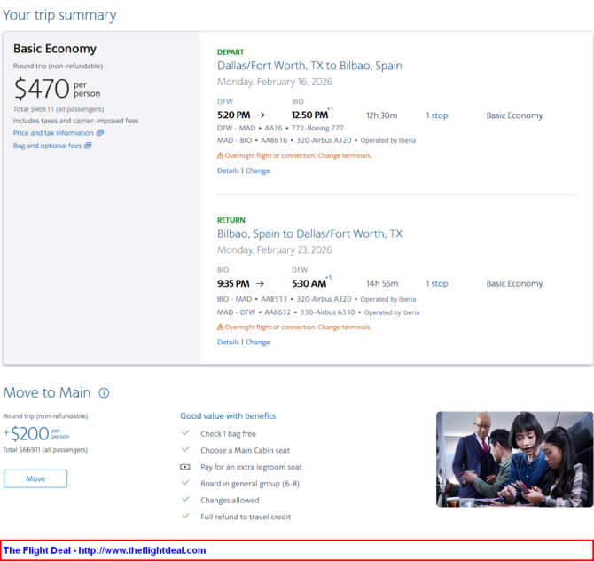 DFW – MAD (Madrid) – BIO (Bilbao) – MAD – DFW