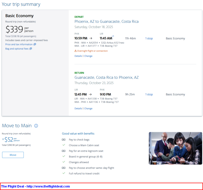 PHX – MIA (Miami) – LIR (Liberia) – MIA – PHX