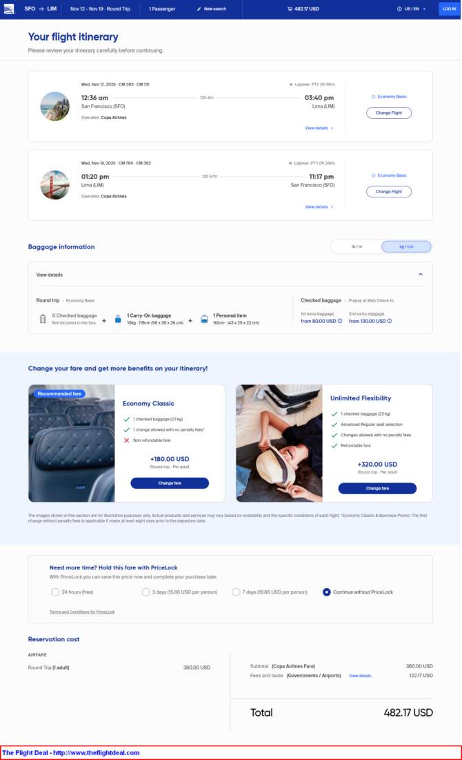 - Book on Copa Air with dates found on Matrix Airfare Search by ITA Software.