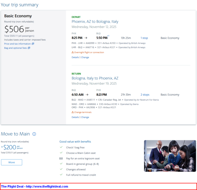 • PHX – LHR (London) – BLQ (Bologna) – MAD (Madrid) – ORD (Chicago) – PHX