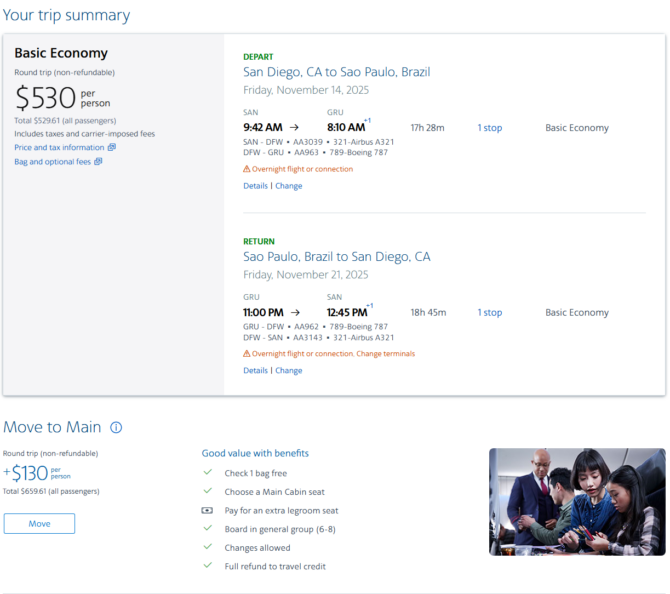 • SAN – DFW (Dallas) – GRU (Sao Paulo) – DFW – SAN