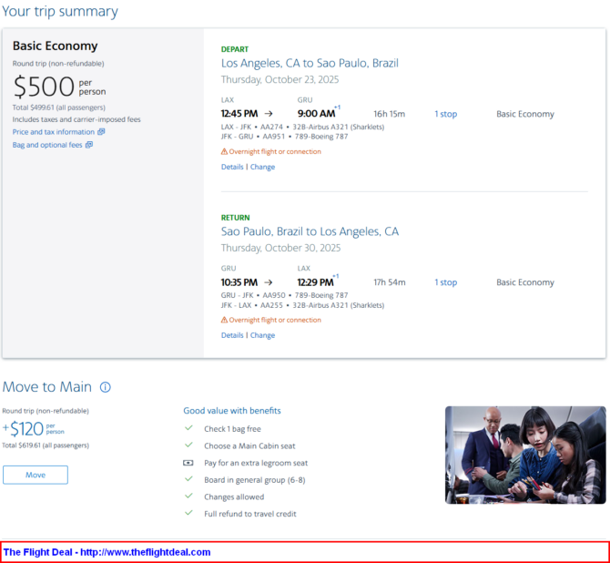 LAX – JFK (New York) – GRU (Sao Paulo) – JFK – LAX