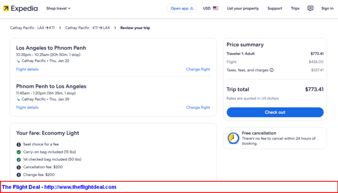 • LAX – HKG (Hong Kong) – PNH (Phnom Penh) – HKG – LAX