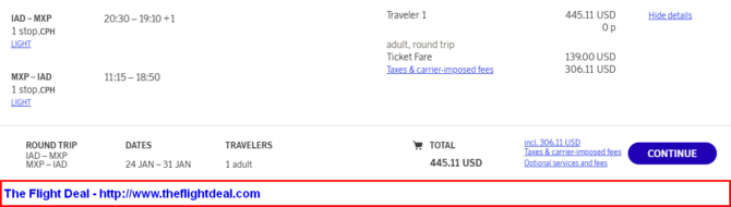 • IAD – CPH (Copenhagen) – MXP (Milan) – CPH – IAD