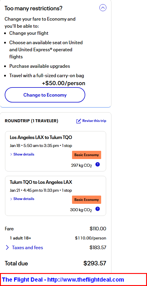 LAX – IAH (Houston) – TQO (Tulum) – IAH – LAX