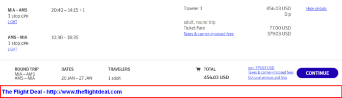 - MIA – ARN (Stockholm) – AMS (Amsterdam) – ARN – MIA