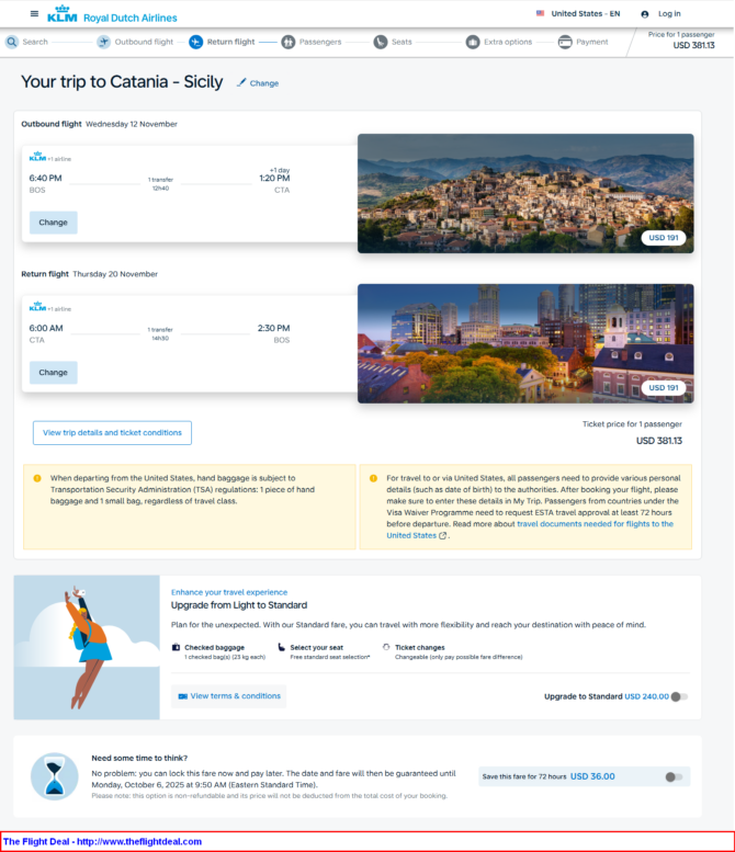 - BOS – FCO (Rome) – CTA (Catania) – FCO – BOS
