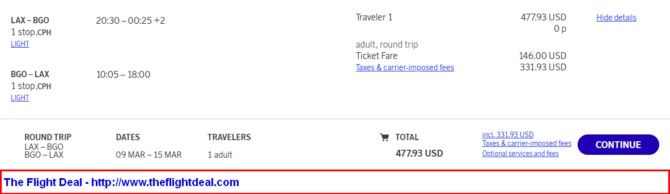 • LAX – CPH (Copenhagen)  – BGO (Bergen) – CPH – LAX