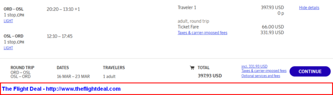 - ORD – CPH (Copenhagen) – OSL (Oslo) – CPH – ORD