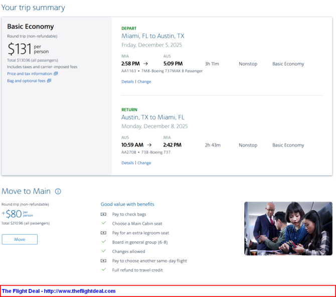 Book on American with dates found on Matrix Airfare Search by ITA Software