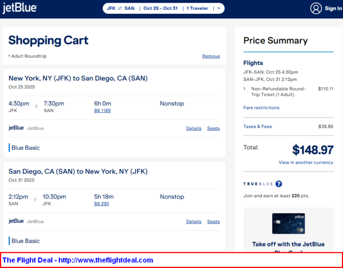 This works both ways, so SAN can be the Origin and JFK can be the Destination