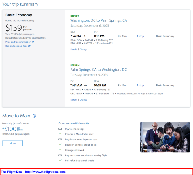 • DCA – DFW (Dallas) – PSP (Palm Springs) – ORD (Chicago) – DCA
