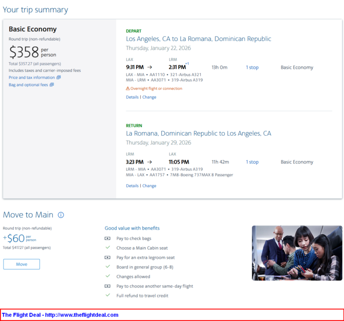 • LAX – MIA (Miami) – LRM (La Romana) – MIA – LAX