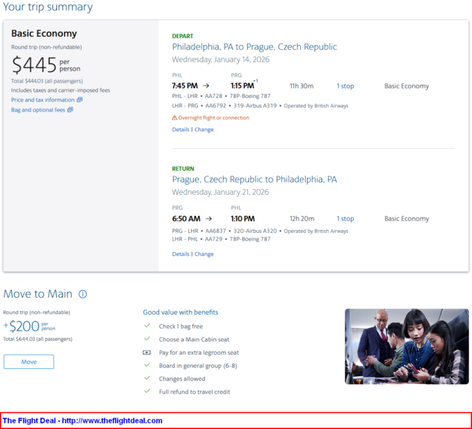 PHL _ LHR (London) – PRG (Prague) – LHR – PHL