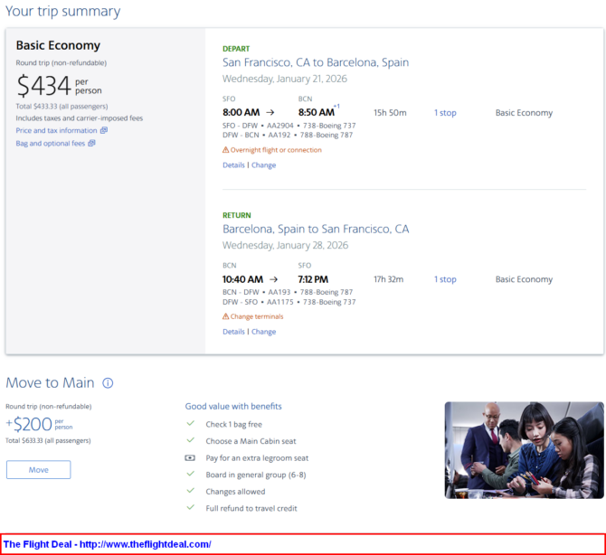 SFO – DFW (Dallas) – BCN (Barcelona) – DFW – SFO