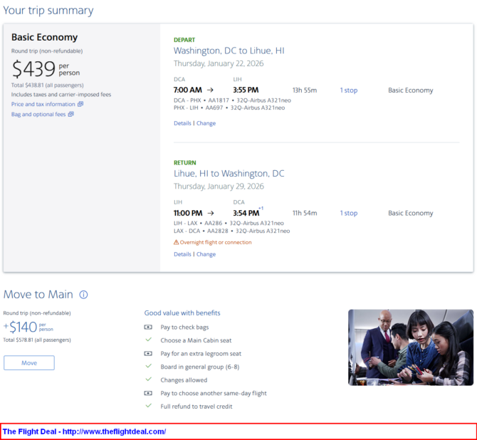 • DCA – PHX (Phoenix) – LIH (Kauai) – LAX (Los Angeles) – DCA