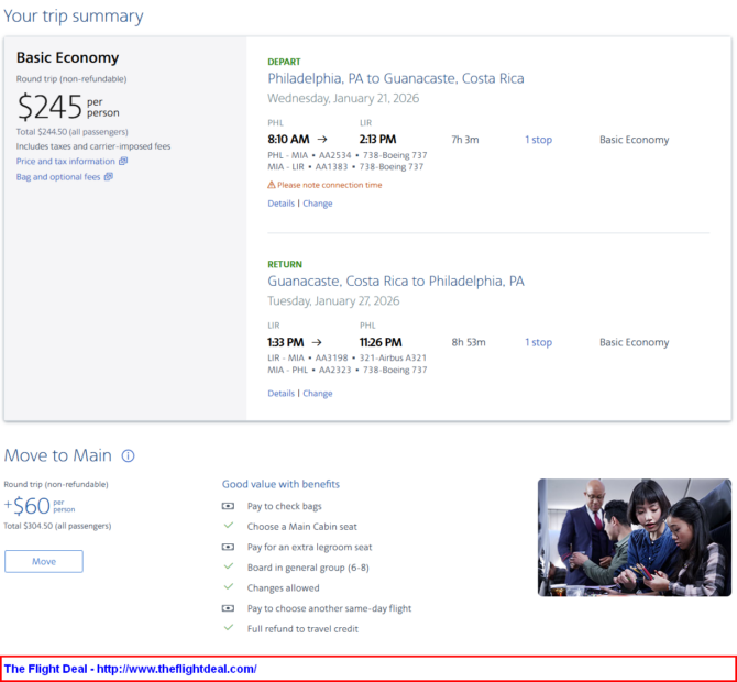 Book on American with dates found on Matrix Airfare Search by ITA Software
