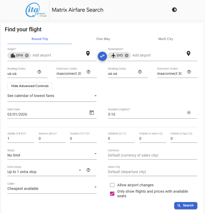 This is just ONE SAMPLE travel date, for more availability, please follow the “Fare Availability” and “How to Search for Availability” instructions below