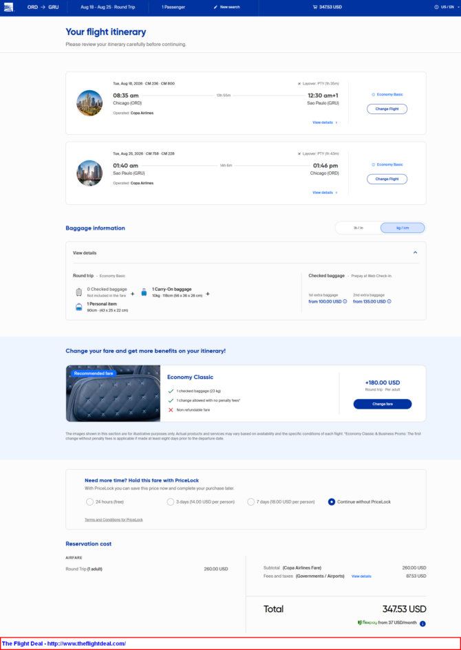 - Book on Copa Air with dates found on Matrix Airfare Search by ITA Software.